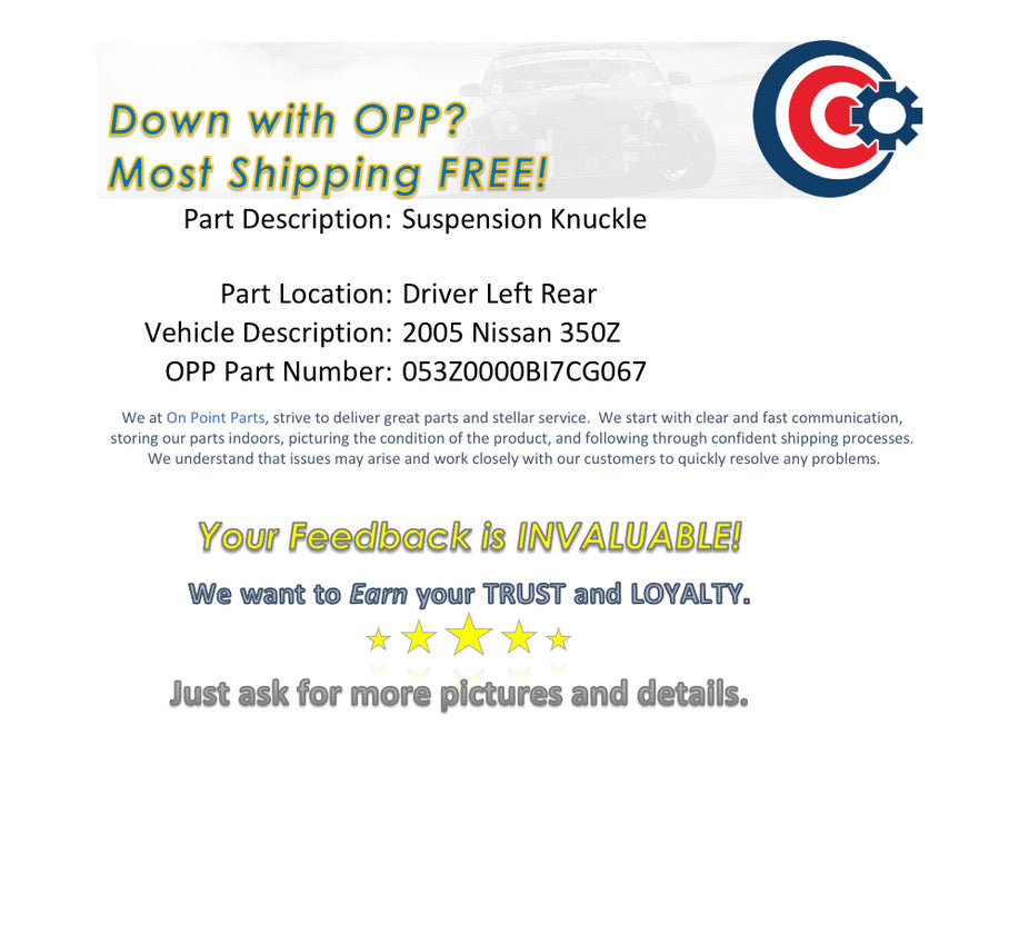2005 Nissan 350Z Driver Left Rear Suspension Knuckle OEM 12BI7CG